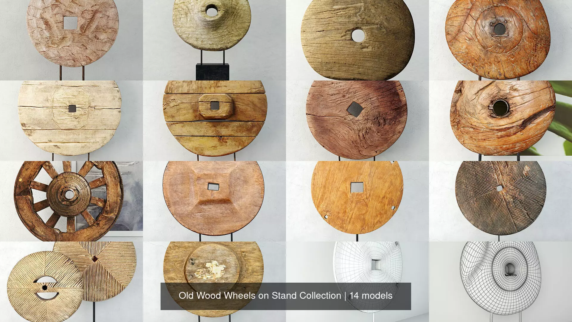 Old Wood Wheels on Stand Collection 3D Model Pack