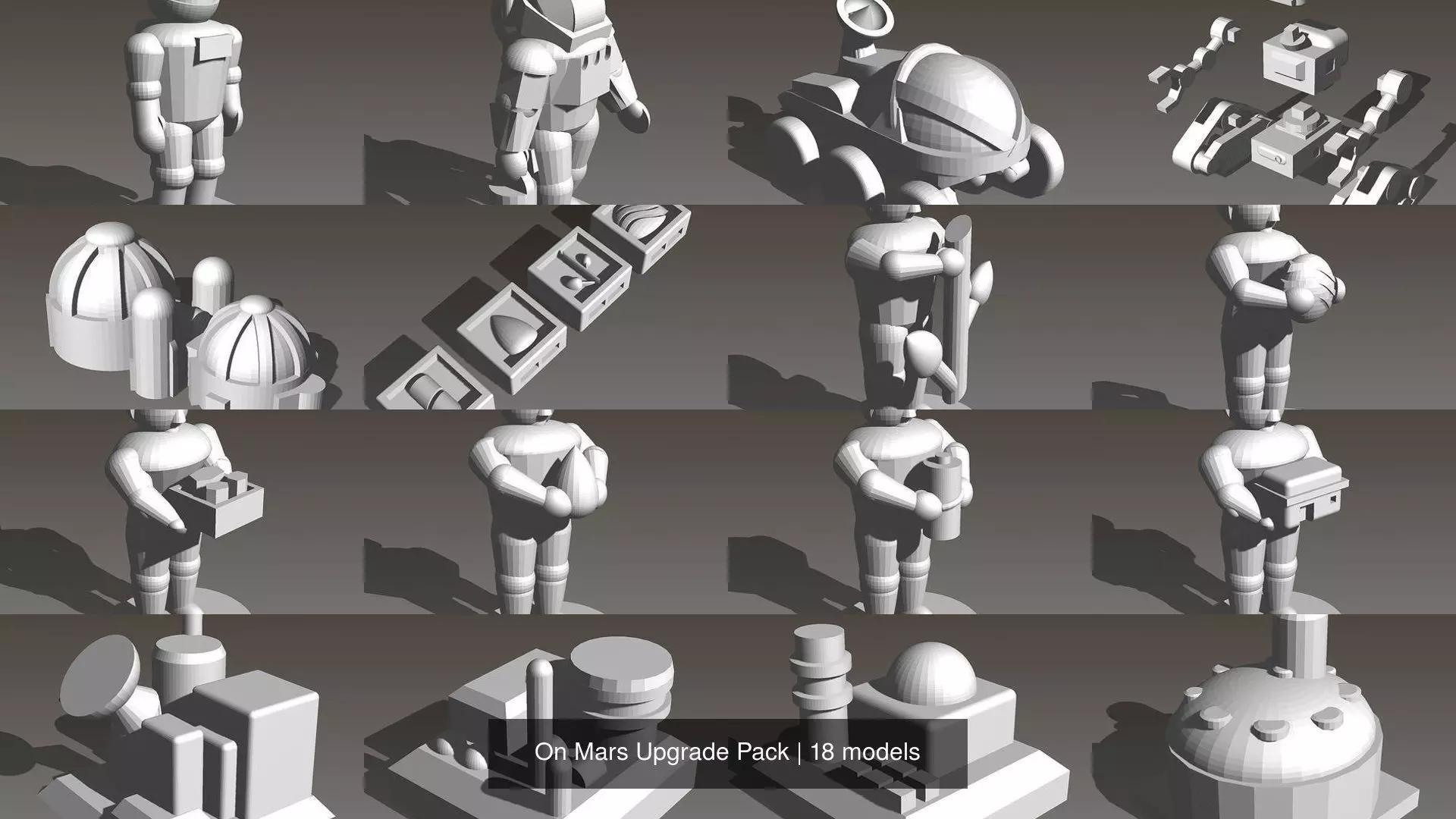 This is an upgrade pack for the Vital Lacerda's On Mars board game, I did not add too much details to the figures, as they are small and most printers have trouble printing fine details.