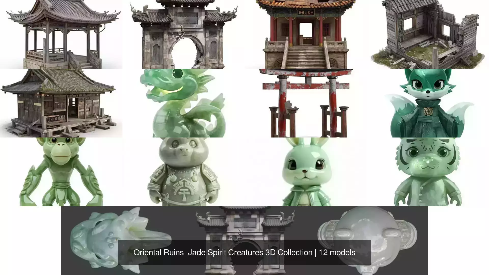 Oriental Ruins & Jade Spirit Creatures 3D Collection