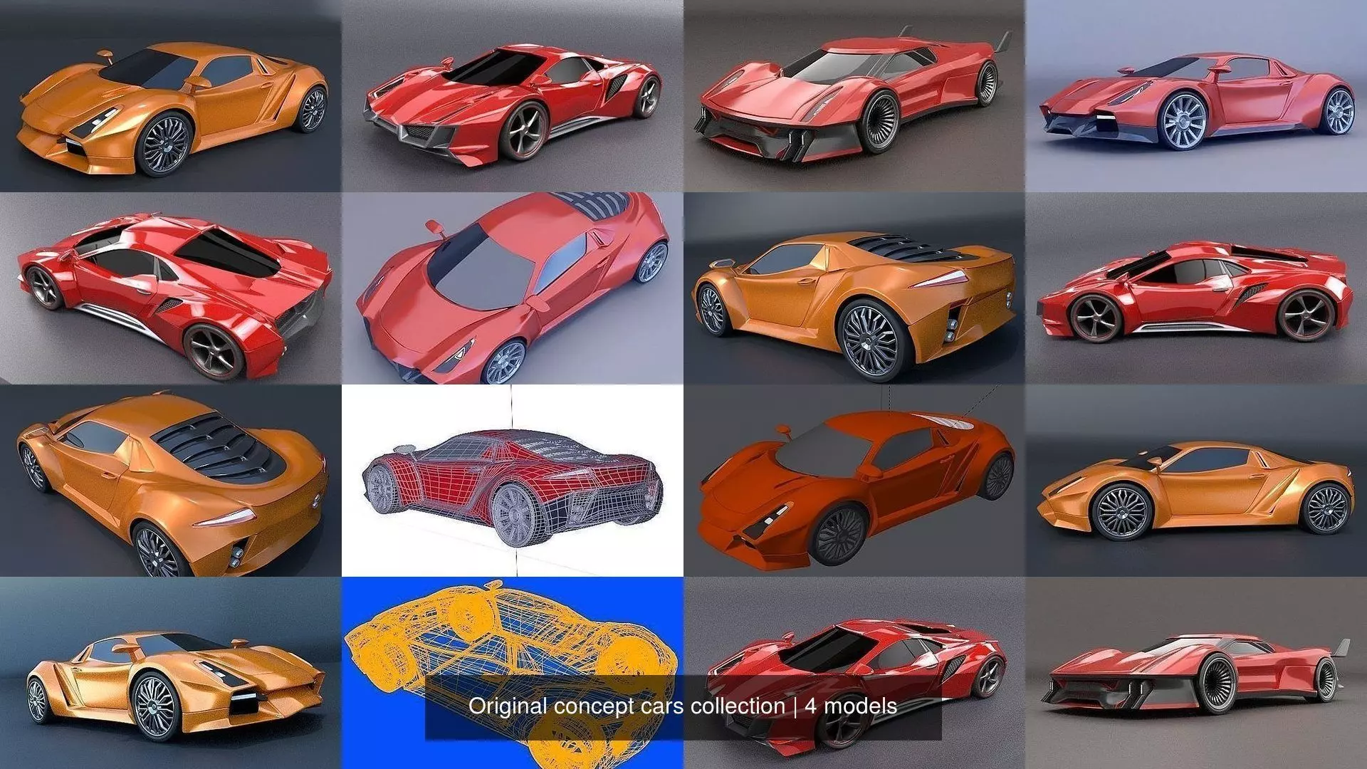 My original concept cars created with blender3d software.Renderings created with cycles rendering engine.If you need it with less polygons,you can remove subsurface modifier.I hope so this cars will be interesting for your 3d projects :)