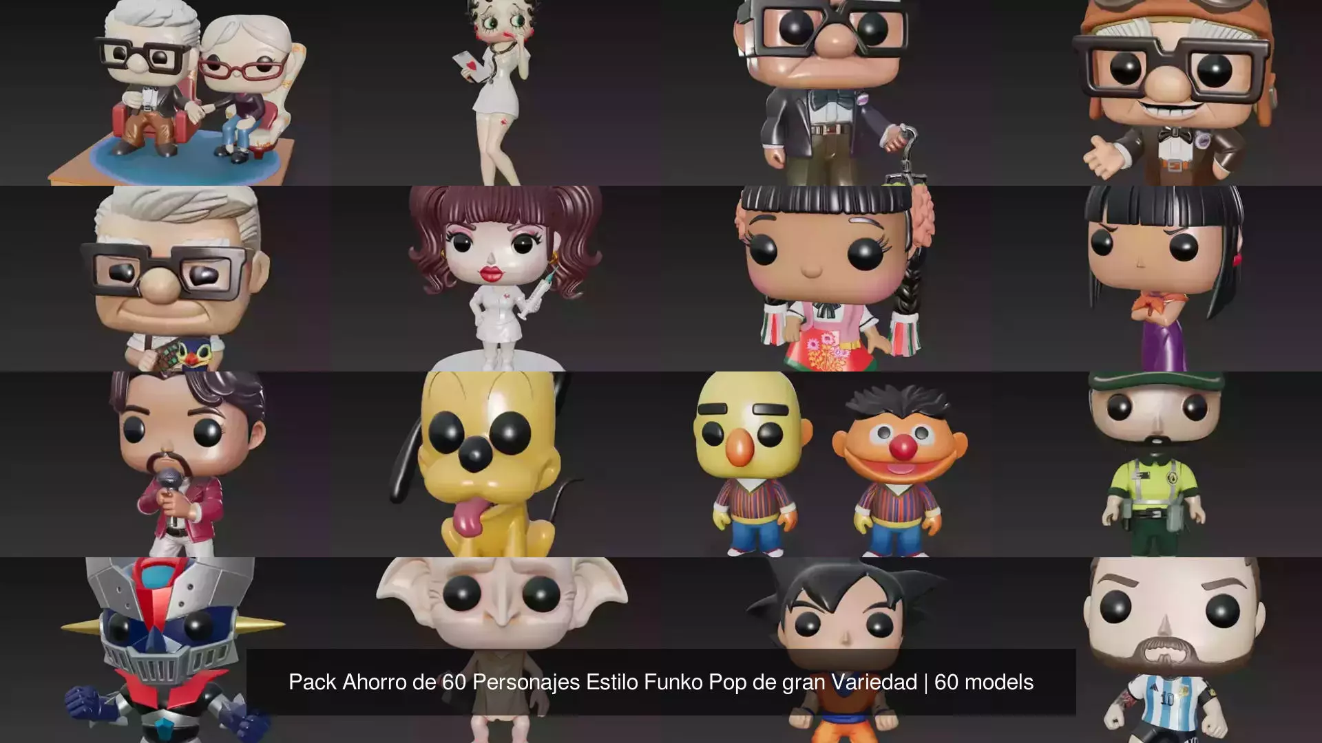 Pack Ahorro 60 Personajes Estilo Funko Pop - Mega Colección PJH3DEste exclusivo pack digital de pjh3d es la solución definitiva para creadores y entusiastas de la impresión 3D que buscan una biblioteca masiva de figuras coleccionables. El conjunto incluye 60 archivos en formato STL, todos diseñados bajo la estética pop con cabezas de proporciones aumentadas y rasgos estilizados que garantizan una apariencia profesional y cohesiva. Esta variada selección abarca múltiples géneros y universos, desde iconos del cine de terror y superhéroes de cómic hasta personajes entrañables de la animación clásica y figuras históricas, ofreciendo una versatilidad sin precedentes para cualquier catálogo de impresión.