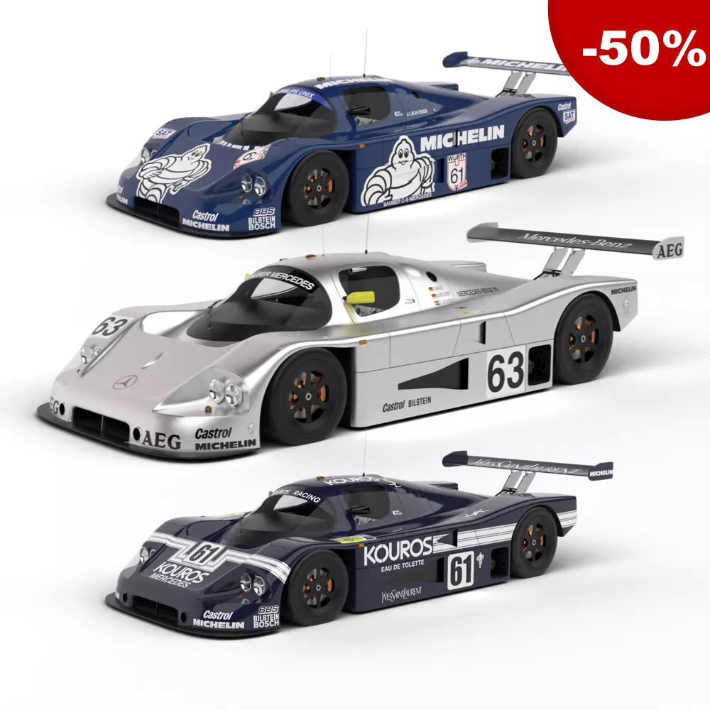 The Mercedes-Benz Sauber C9 is a pack of three very popular Mercedes-Benz Sauber C9 1987 year that everyone on the planet likes.This is a very useful pack for you because you buy all cars with a 50% discount.