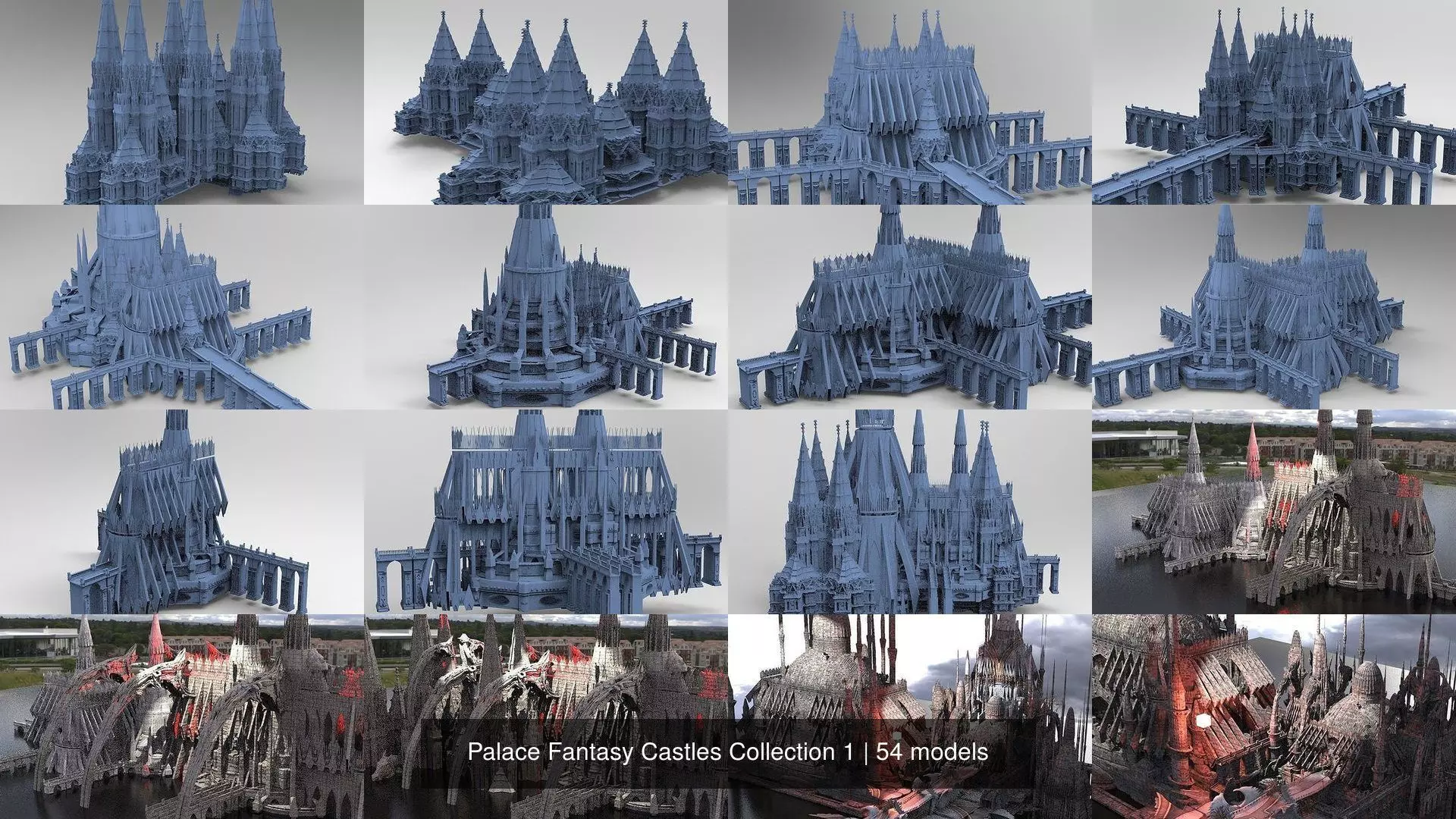 Palace Fantasy Castles Collection 1This kitbash has many variation of castles with some being the same models blended with other structures in this collection Giving you many options for ideas!