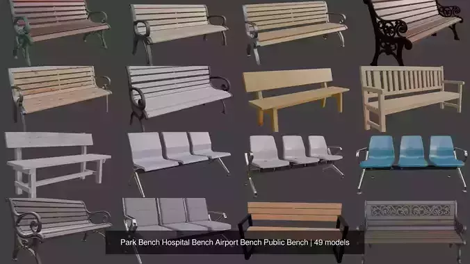 Formats available: OBJ, FBX, STL, USDZ, GLB. Includes PBR textures (diffuse, normal, roughness, metallic, etc.). Add professional public seating to your 3D projects with this versatile airport bench model!
