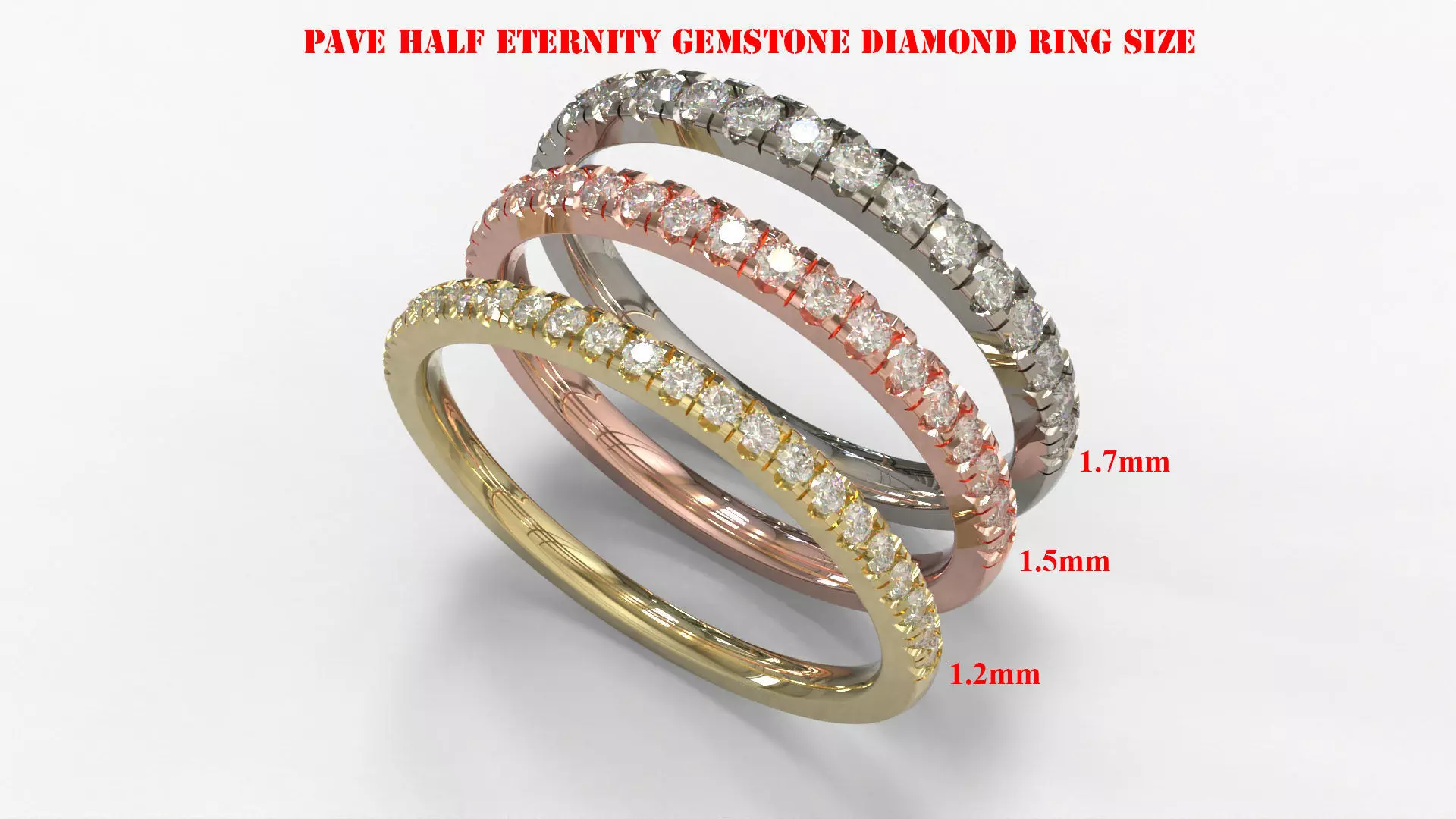 Pave Half Eternity Gemstone Diamond Ring 3D Model Pack