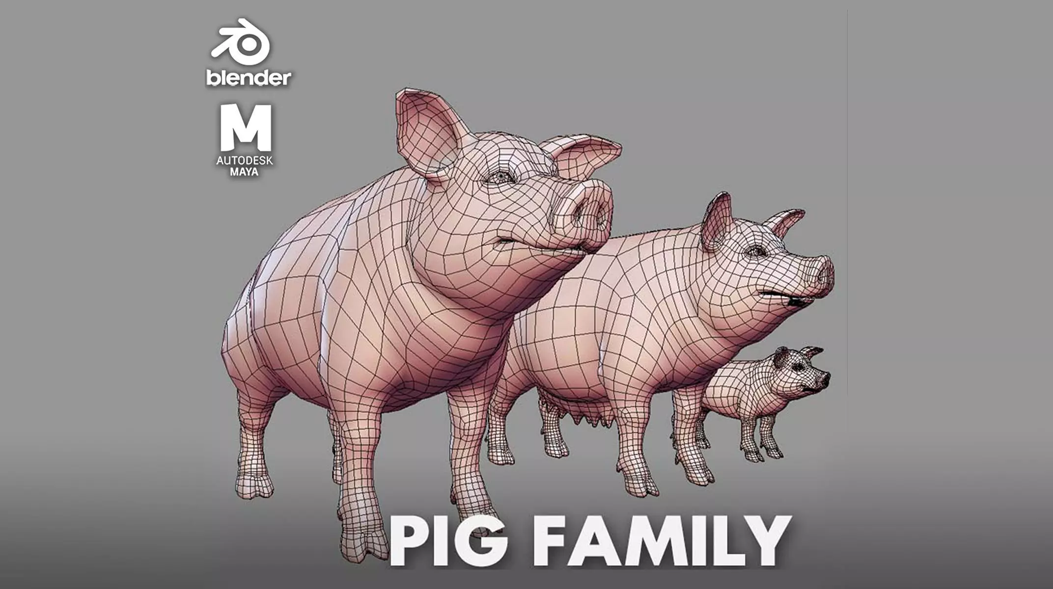 Pig Family BaseMesh model ( papa pig, mama pig, piglet )