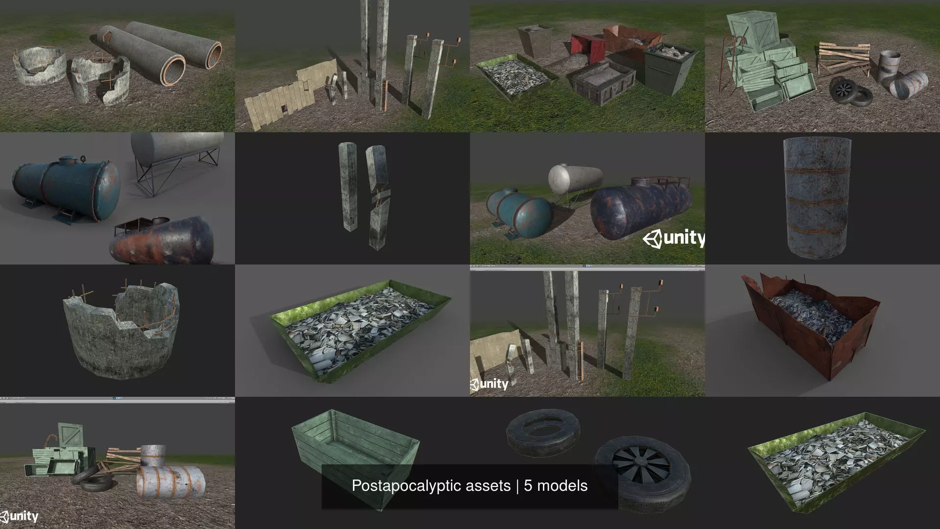 Nice, very useful for scene-building ! ... But, had to DL each pack separately as 'All-in-One' gave 'read beyond file' errors. Also 5/6 FBX and OBJ do *not* call their many nice, well-named textures, requiring hand-loading. 'Garbage + scrap' MTL needed its call-paths editing...