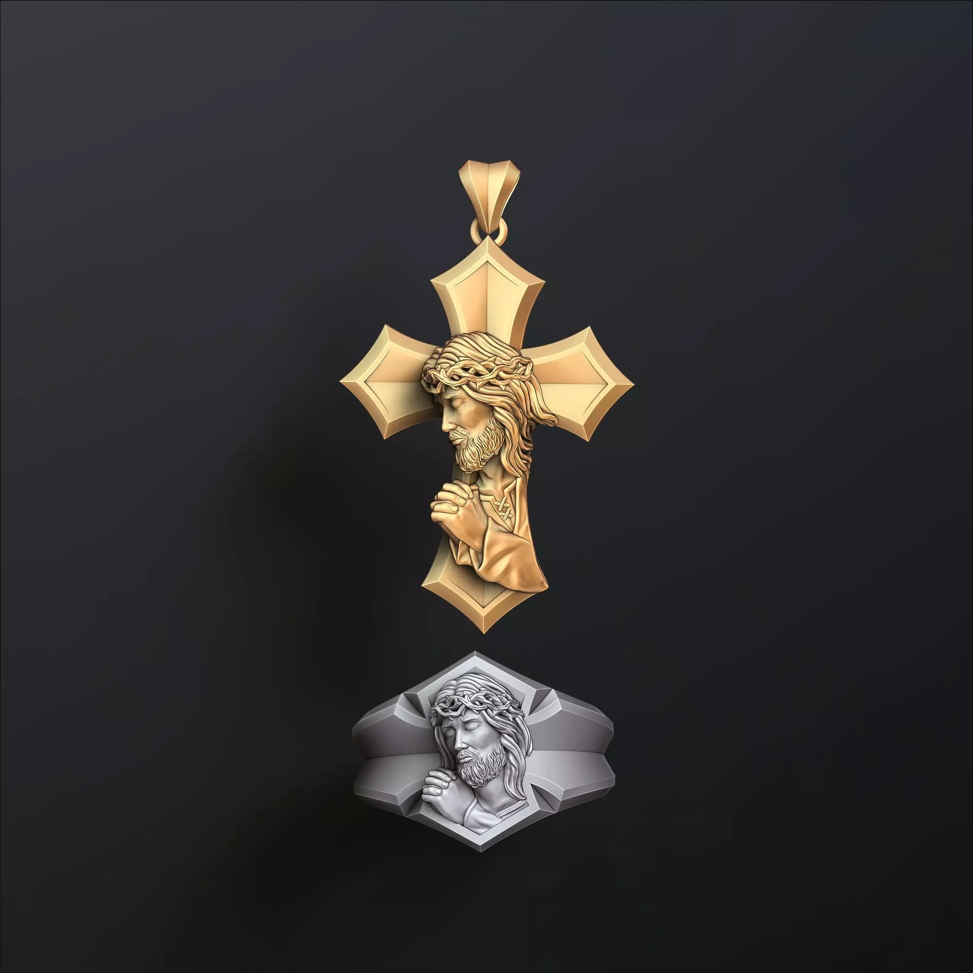553.Praying Jesus Cross Pendant Ring v2 Collection 3D Print Models