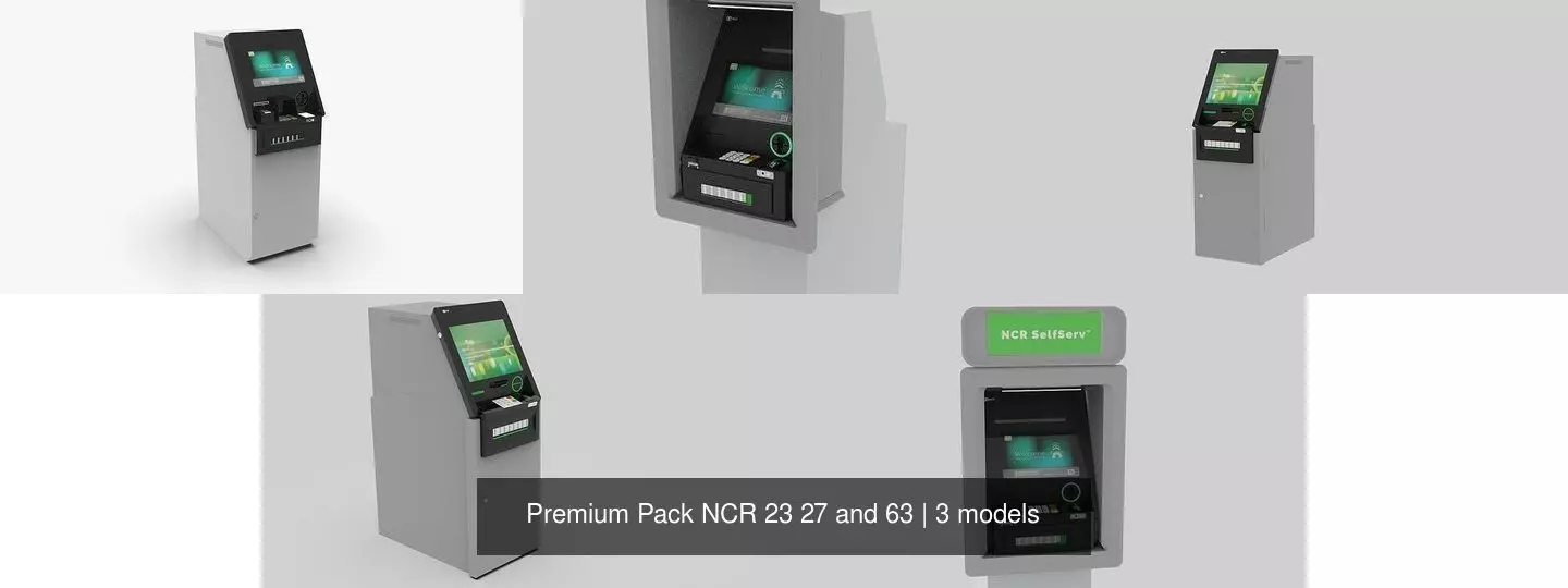 3 Premium modelshttps://www.cgtrader.com/3d-models/architectural/other/ncr-selfserv-63-atm-s63https://www.cgtrader.com/3d-models/architectural/decoration/atm-ncr-s23-selfservicehttps://www.cgtrader.com/3d-models/electronics/computer/ncr-selfserv-27