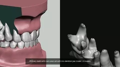 Primary teeth with root canal set with mix dentition jaw model 3D Model Pack