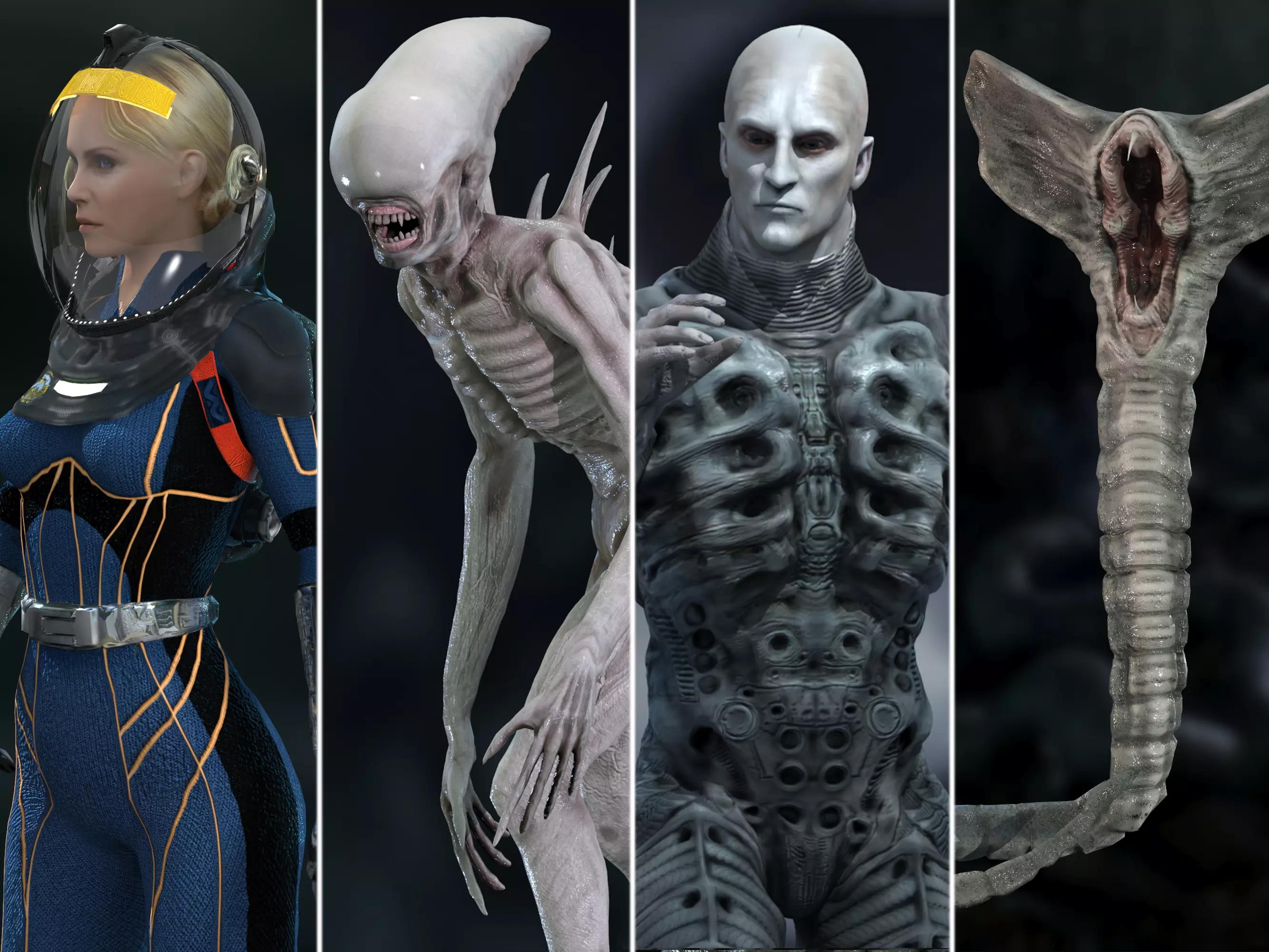 This pack presents characters from Prometheus, from my collection of assets, you can buy each of them individually or all at once with a discount. This collection consists of 4 models. You can read more about each item from the collection. To do this, select a model from the collection and click on it. You will go to a separate model and see its data.