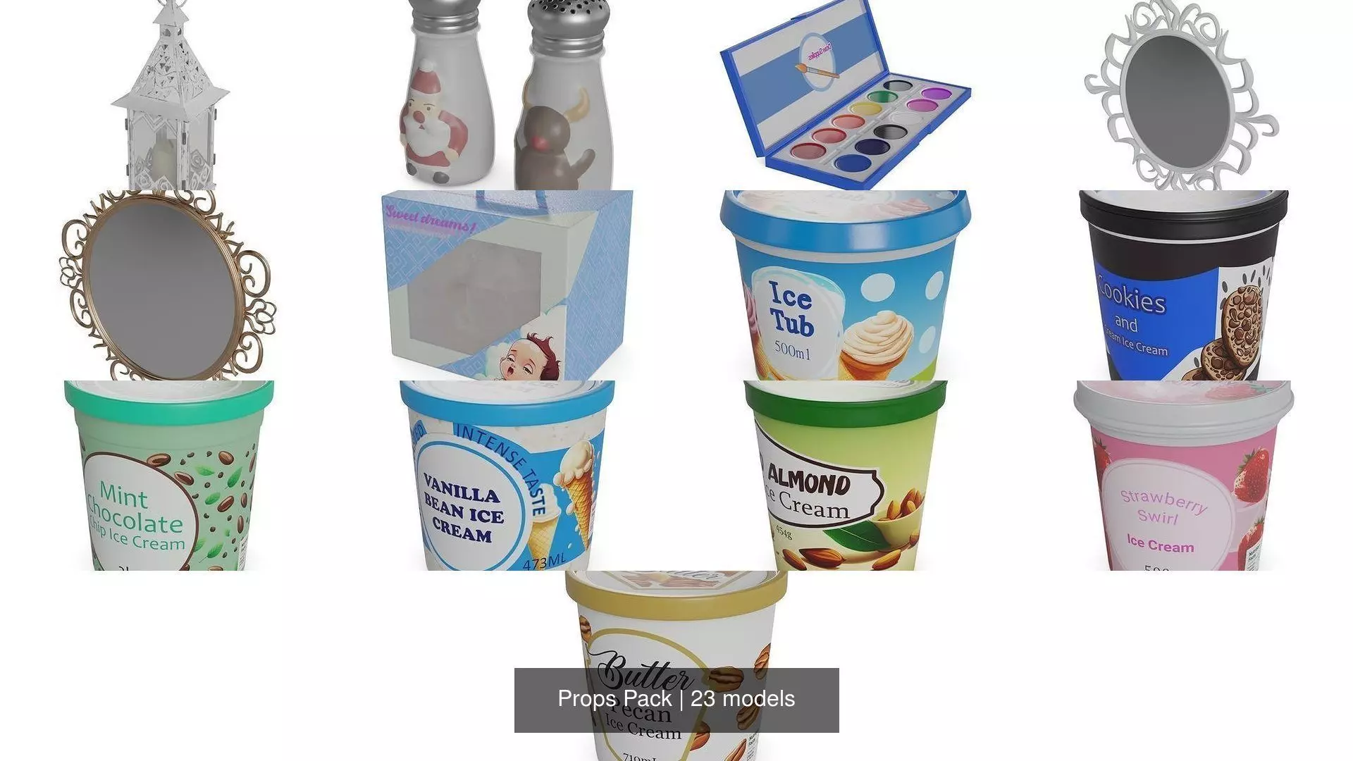 This prop pack is perfect for enhancing your 3D environments with realistic and detailed everyday objects. It includes a wide variety of elements, ranging from appetizing food to refined decorative accessories. Ideal for indoor scenes, video games, or architectural renderings.