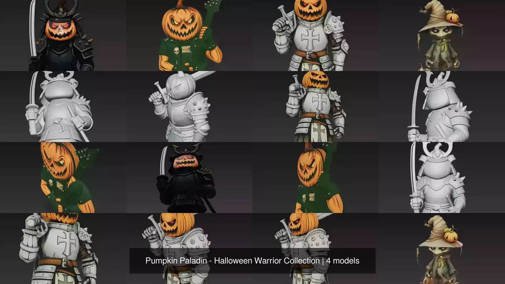 Bring heroic energy to Halloween with this unique collection of stylized pumpkin warriors and dark fantasy characters.From the noble Pumpkin Paladin and fierce Samurai to the metalhead Rocker and haunted Scarecrow, each design fuses bravery with spooky charm.All models are provided in STL, OBJ, FBX, and GLB formats — high-resolution, clean topology, and print-ready for collectors and CGI artists.Discover more stylized Halloween and fantasy-themed creations here: https://www.cgtrader.com/3d-models?author=ankhates-fk