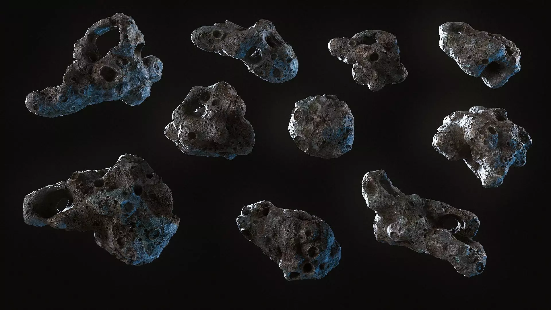 include 10 unique models large asteroid and 8 small asteroid parts and 3 asteroid clouds