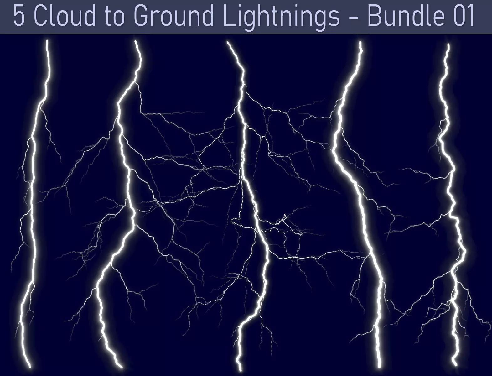 Realistic Lightnings Bundle 01 - 5 pack CG