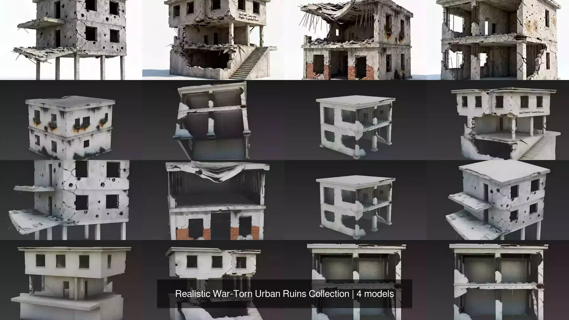 Collection DescriptionSet the scene for devastating modern conflict, gritty survival, and environmental storytelling with this highly authentic library of destroyed urban architecture.This collection is the definitive toolkit for level designers and developers building tactical FPS shooters, post-apocalyptic open worlds, or realistic war-torn environments. The set captures the haunting scale and heavy structural damage of a city under siege: