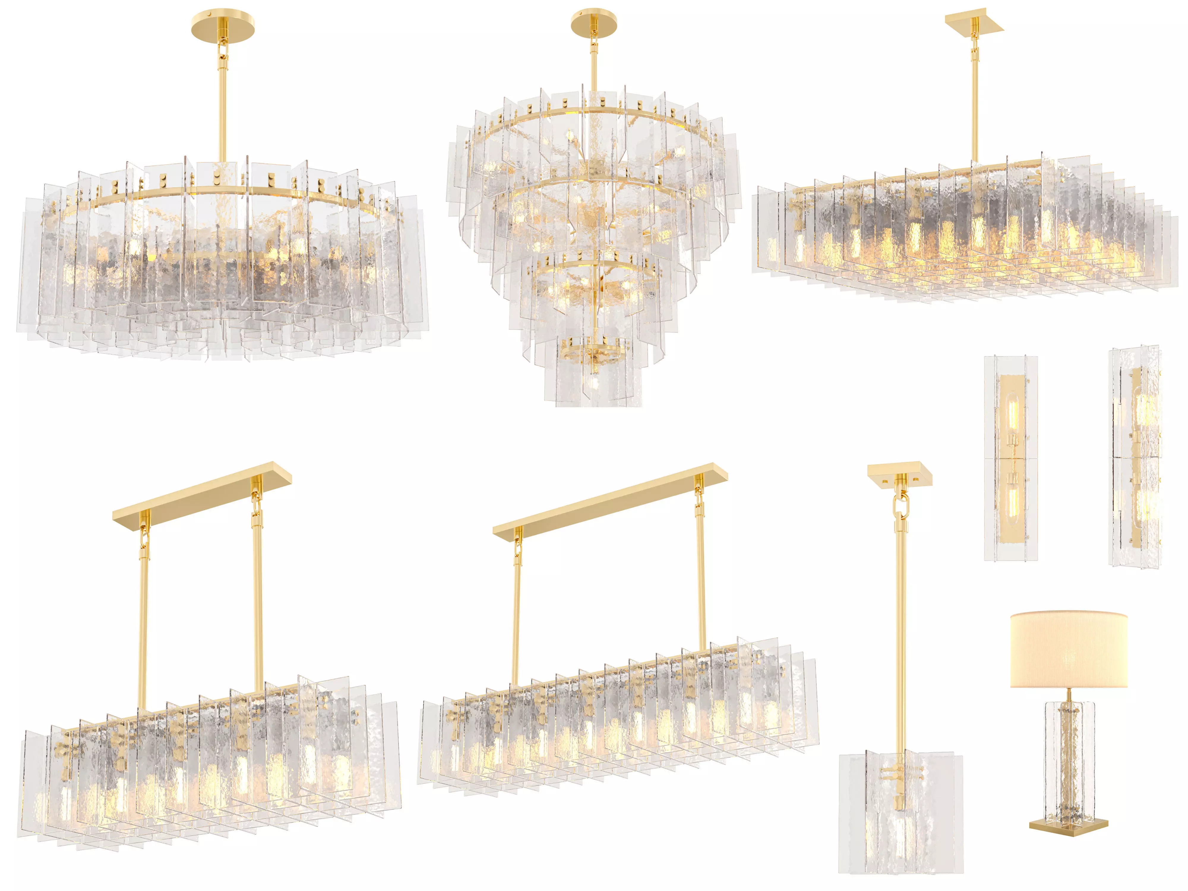 Crafted of solid cast glass, our Lattice collection's interlocking planes recall the geometric precision of the midcentury International Style. A study in repetition and rhythm, the linear form employs open space to lend a weightless feel. Gently rounded corners on the fluid, rippled panes subtly soften the outline, while diffused light glows from within.