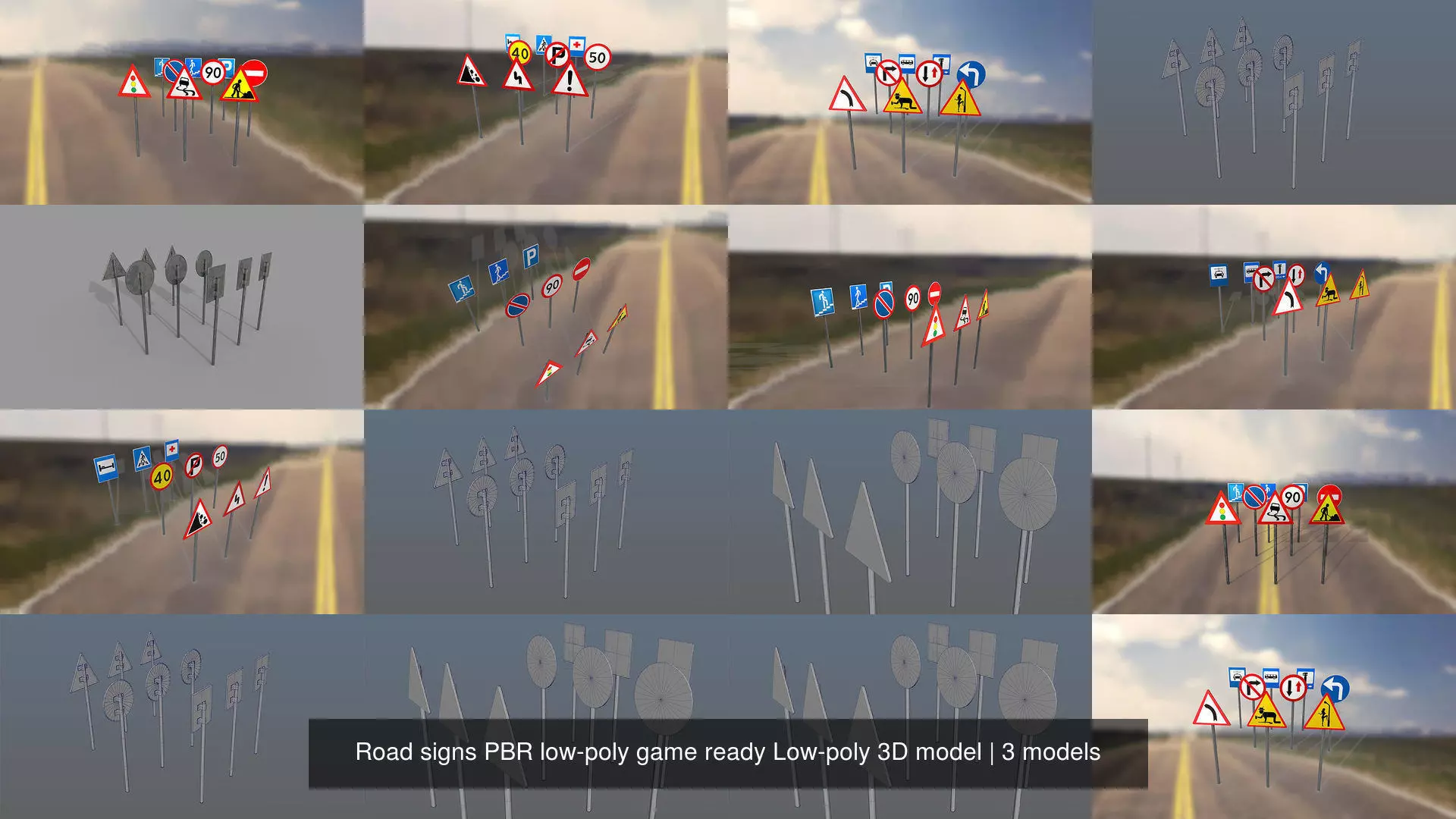Road signs PBR low-poly game ready Low-poly 3D model 3D Model Pack
