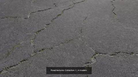 Collection of road textures including clean textures and various cracked, dirty and puddles variations for a total of 36 different road types (materials) to make them look new, old, cracked, with puddles....