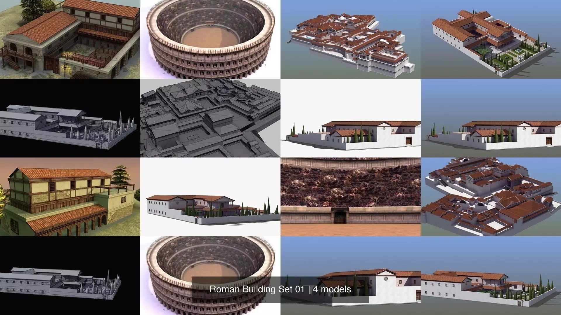 Roman Building Set 01. Great multipurpose 3D models (ideal for offline rendering or real time uses such as games or simulation).