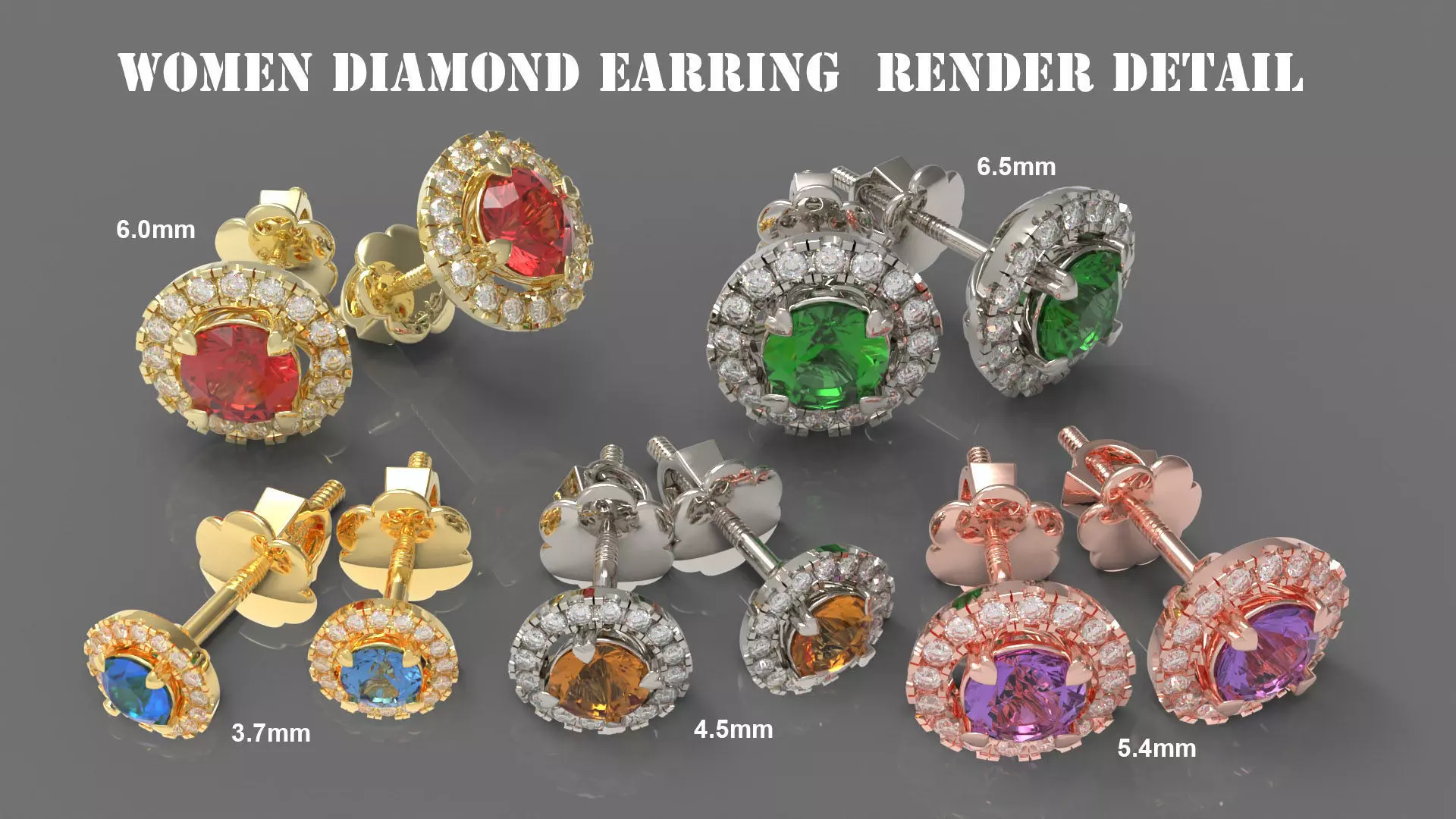Round Diamond Halo Stud Earrings 3D Model Pack