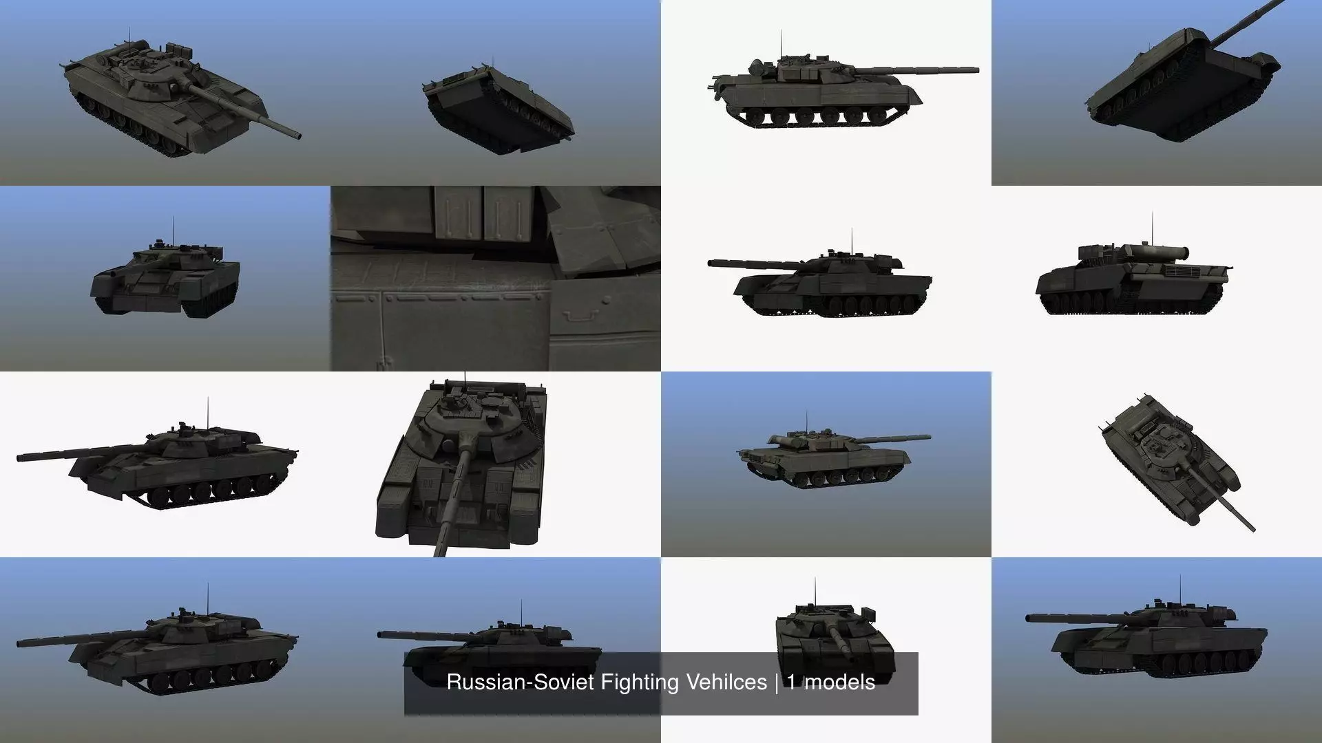 Russian/Soviet Fighting Vehilces. Great multipurpose 3D models. Native format is 3ds Max. No plugins required to achieve renders shown above. Texture maps are located in their own zip download. Model built to real world scale - units are meters. Lower resolution versions are available, ask for details.