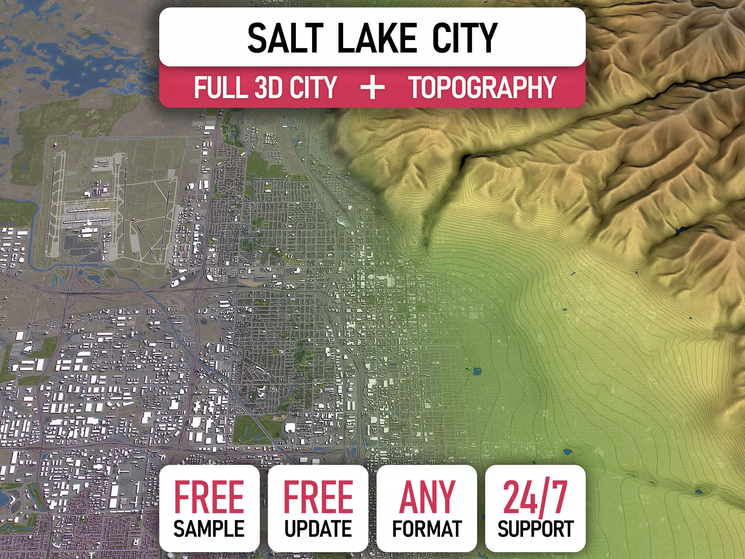 Salt Lake City - Topography Terrain 3D City low-poly 3d model
