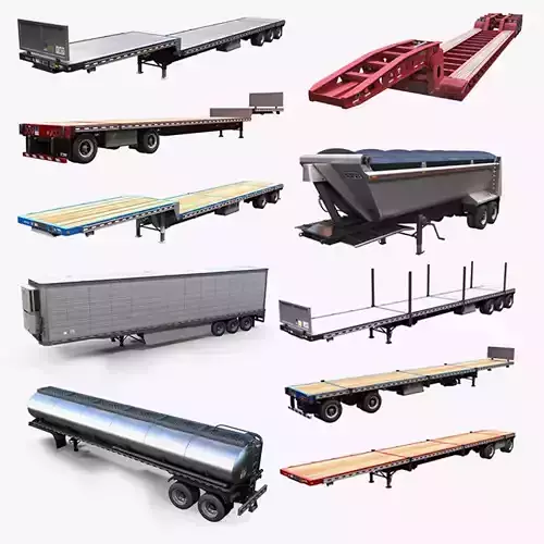 Van trailers, fuel trailer, flatbed trailers, low boy, dump trailer.Model ready for real-time apps, games, virtual reality and augmented reality.Asset looks accuracy and realistic and become a good part of your project.