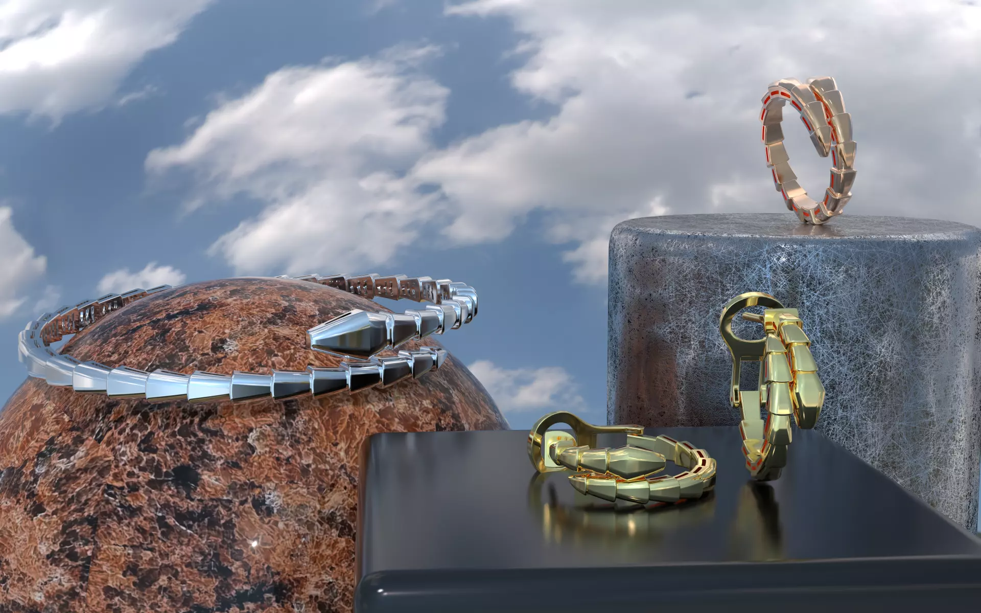 Set Bvlgari Serpenti Bracelet Ring and Earrings 3D Model Pack