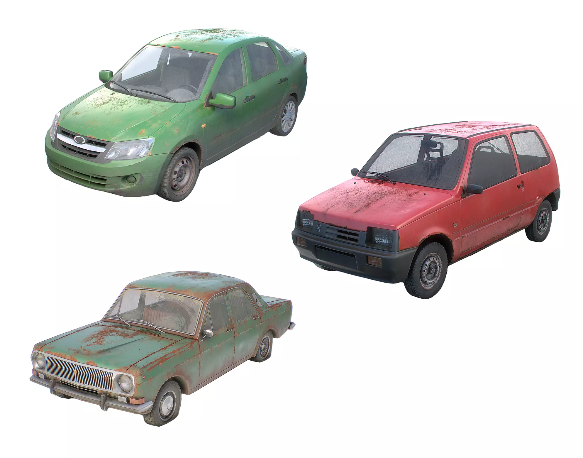 Package of 3 gameready soviet car models.