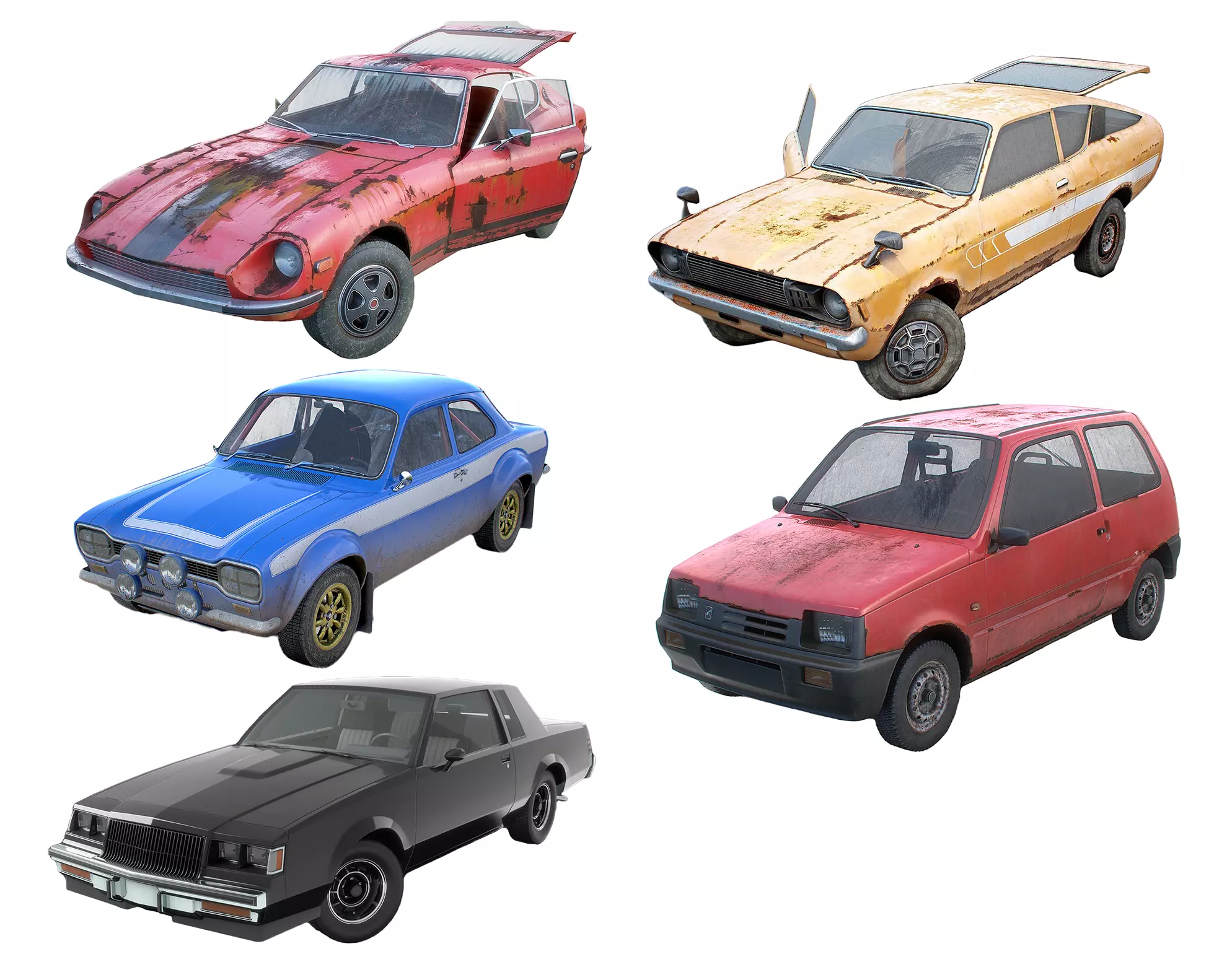 Set of 5 classic coupe cars with interior and color variants az9 3D Model Pack