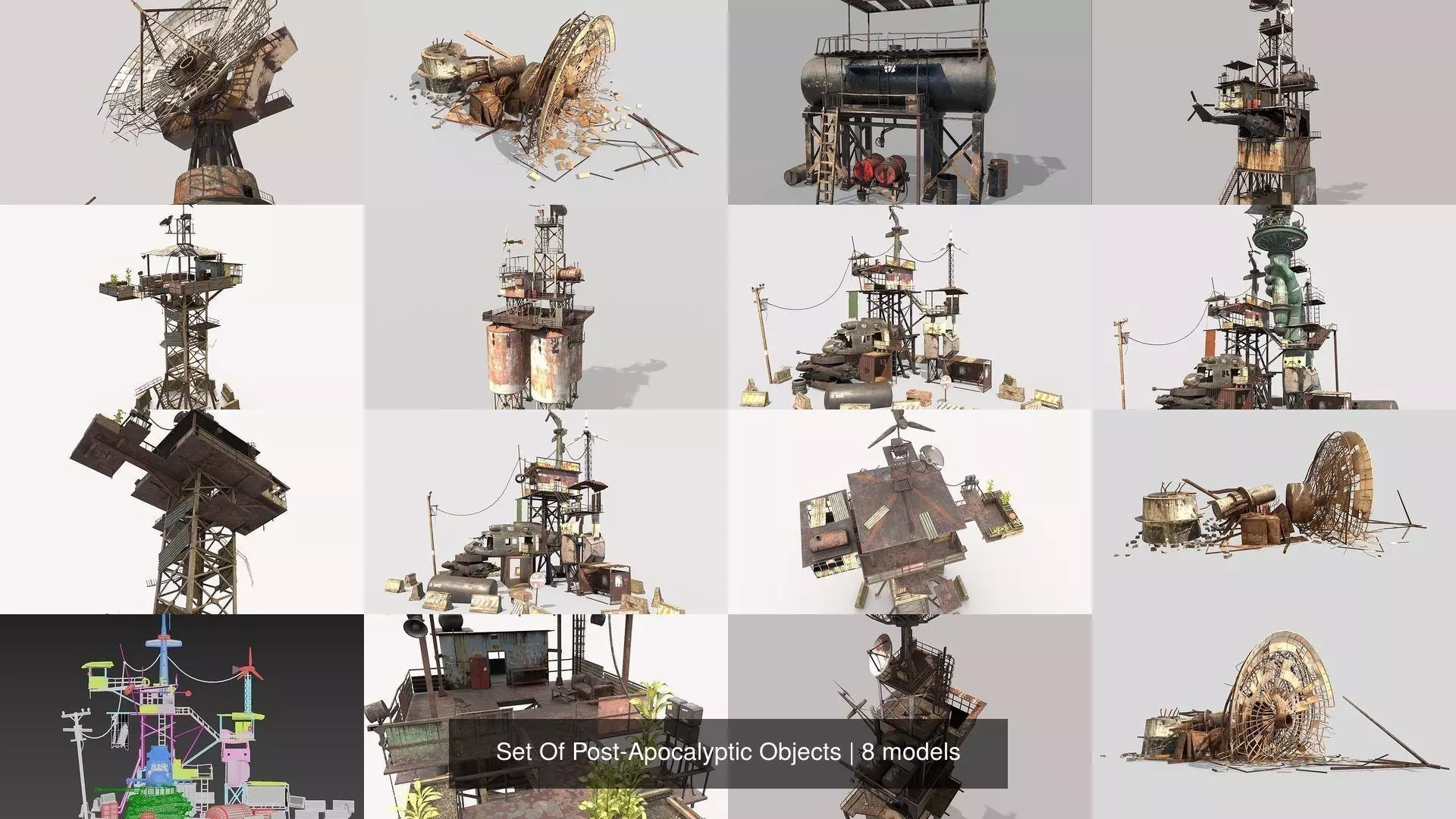 Models of Post-Apocalyptic Outpost Tower . Models are very realistic and PBR materials. Maps are diffuse-specular-glossiness-height and normal. Model's textures has two sizes; 4096x4096-2048x2048. All maps are JPEG and PNG formats. Record formats: MAX -OBJ- 3DS -FBX