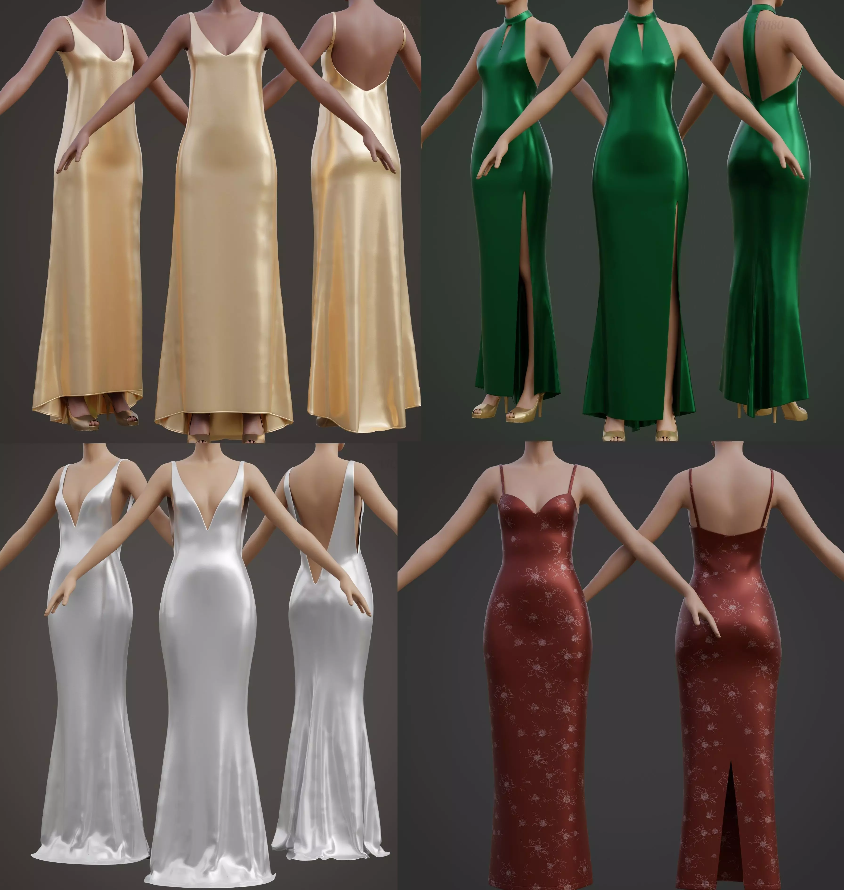 this is a high quality 3D prom dress collection that can be used for your rendering projects. The model is a detailed design that allows for close-up renders. Blend file contains already set up background scene, lighting and camera which you easily import more props and render according to choice