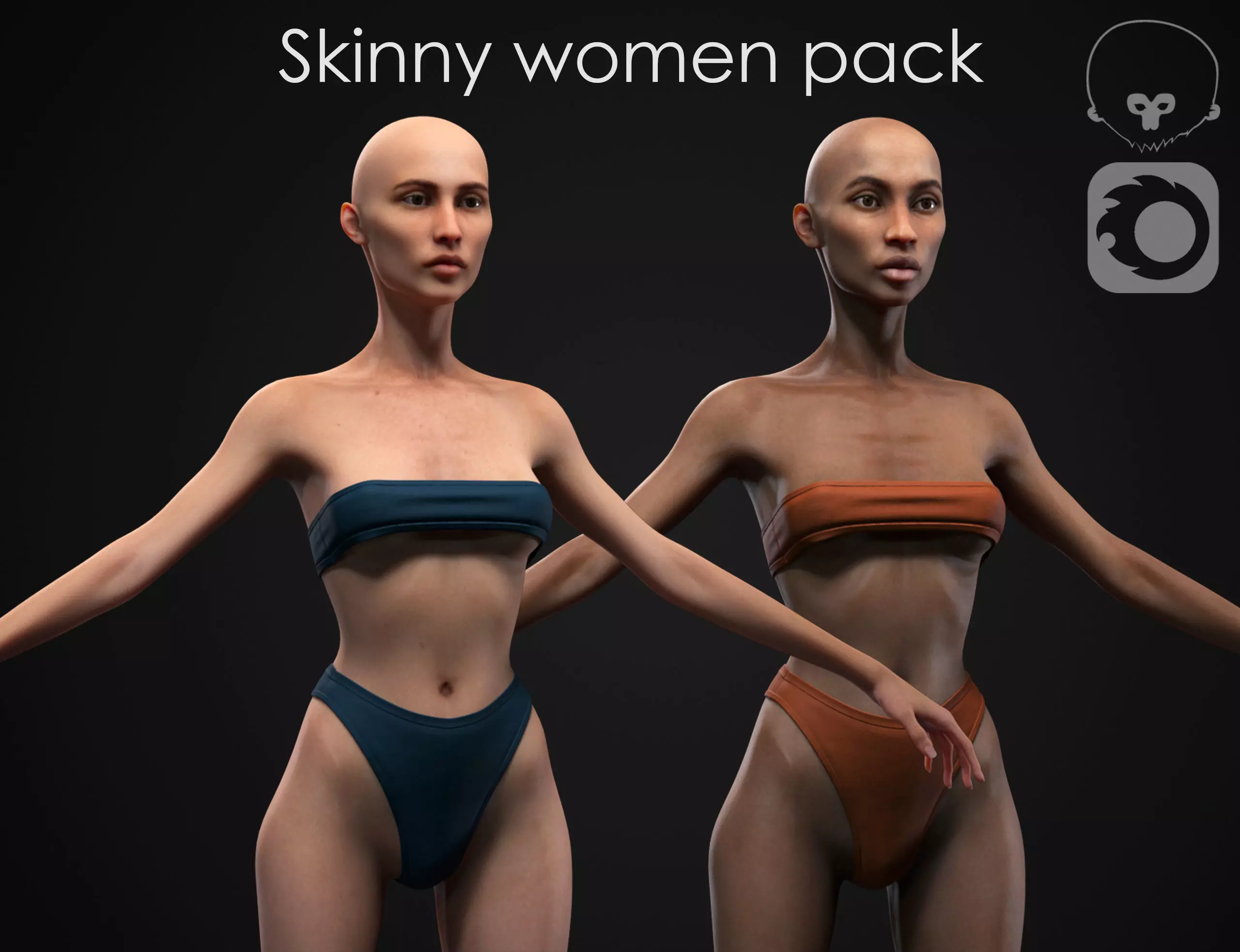 • High quality 3d models of skinny women.