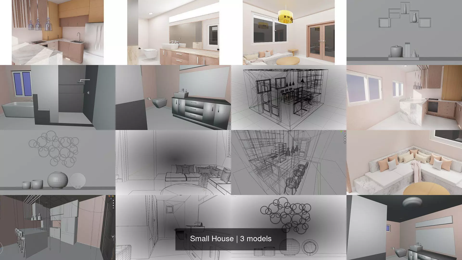 Quick OverviewThis is a real scale collection of house rooms: kitchen, bathroom, and living room.