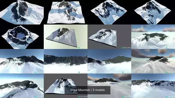 This model was made in World Creator 2. This map covers an area of 2048m by 2048m.This collection comes with 5 different snow mountains.
