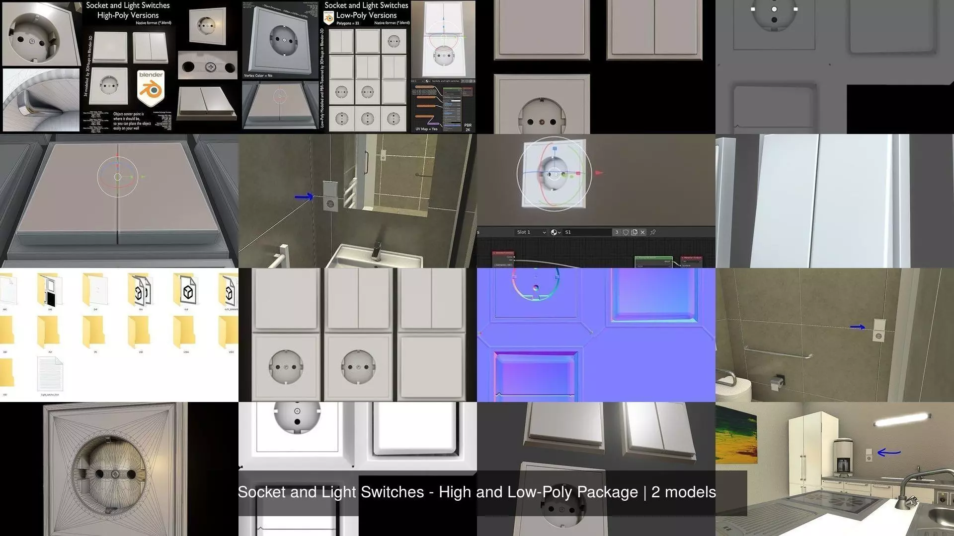 Socket and Light Switches - High and Low-Poly Package
