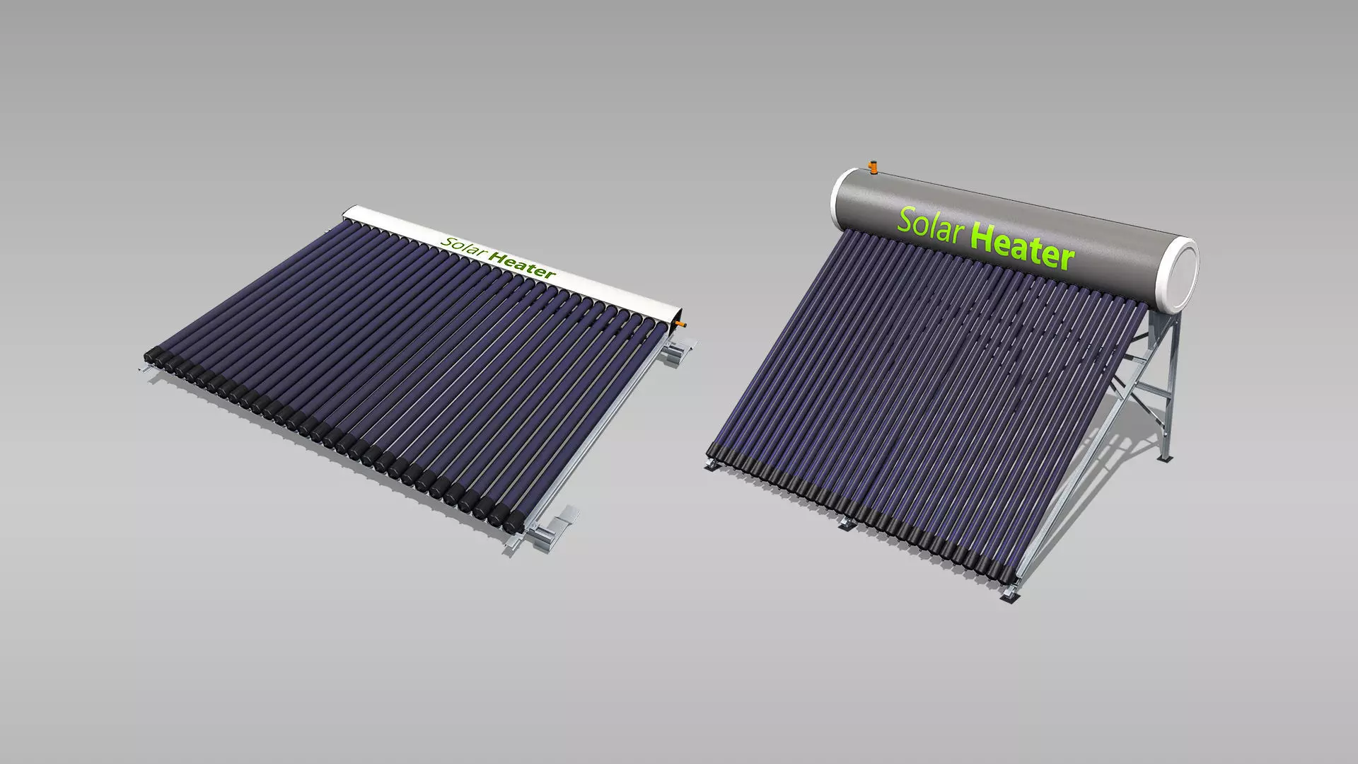 A collection of detailed 3D models of 2 solar water heaters, modeled and rendered in Cinema 4D. The models were created using approximate real world dimensions.