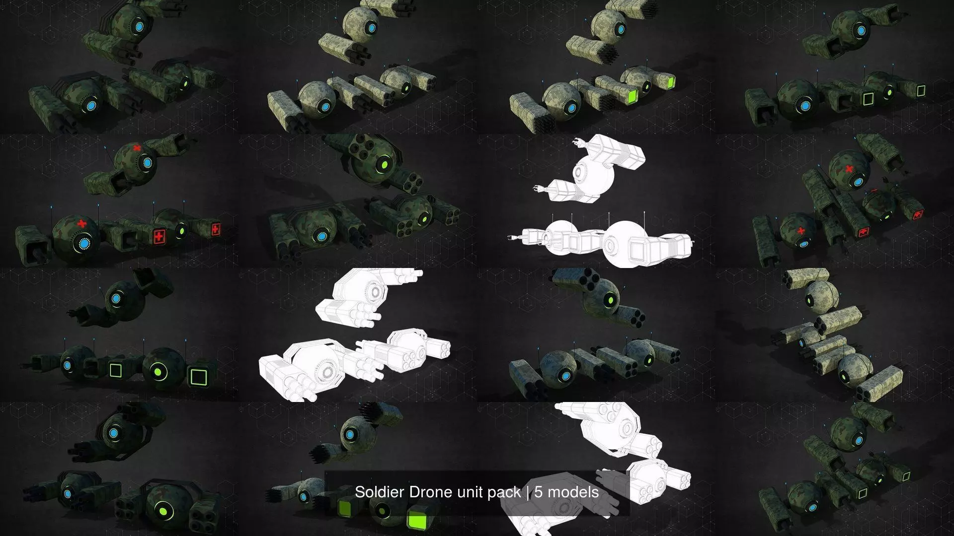Soldier Drone unit pack is a collection of 5 army drones including one engineer and one medic unit.The attributes are given below