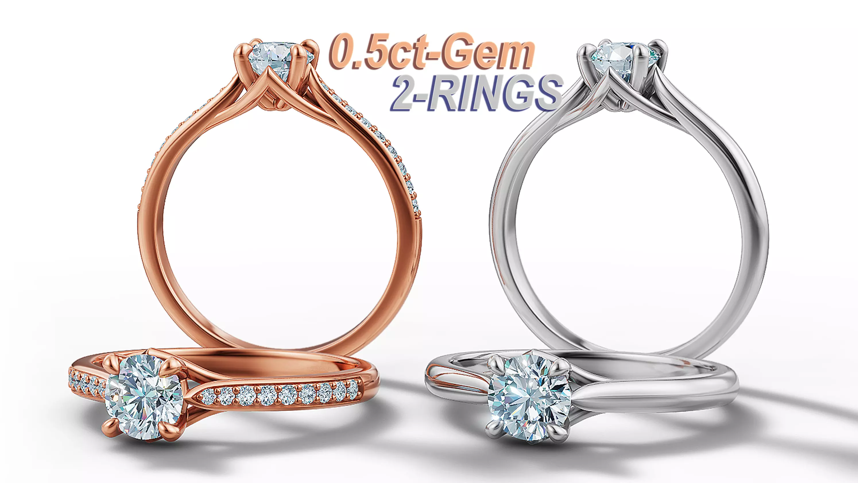 Happy to present Half Carat Solitaire Engagement Rings 3d models with a discount, 2 RINGS.