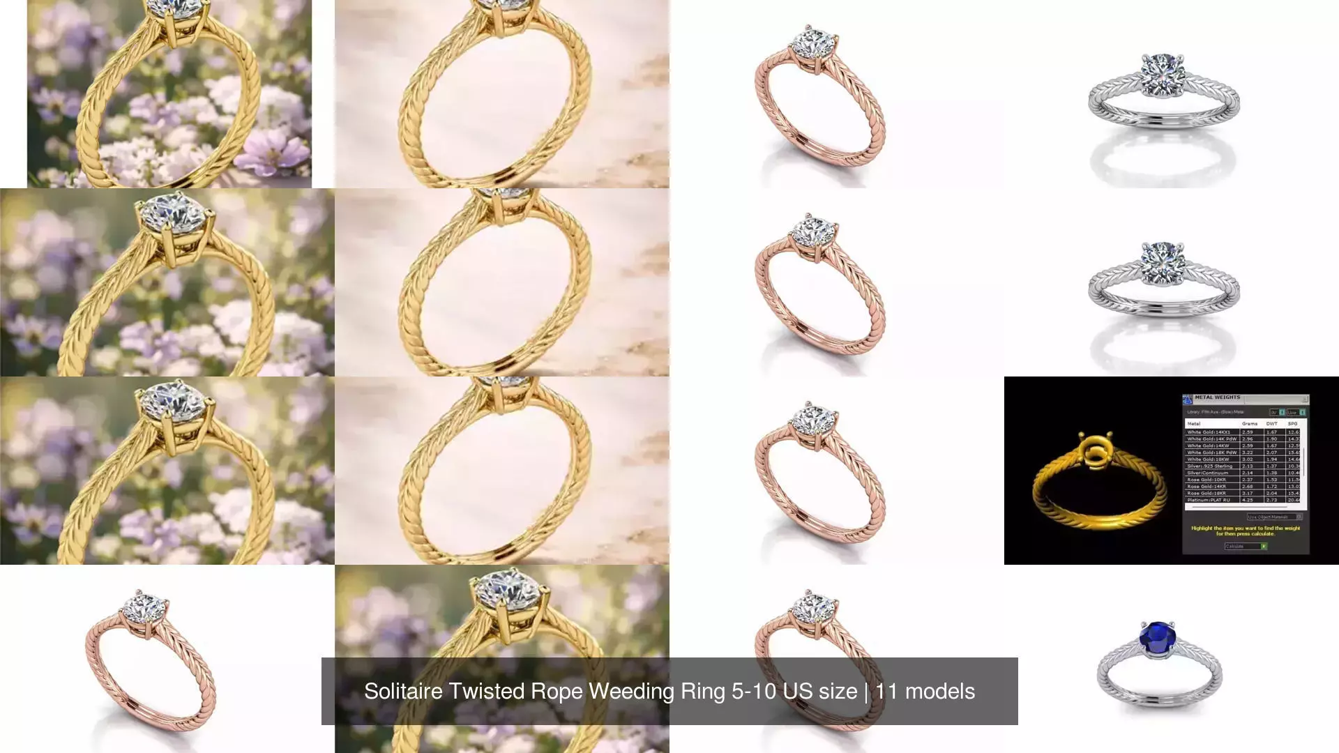 Solitaire Twisted Rope Weeding Ring 5-10 US size 3D Model Pack