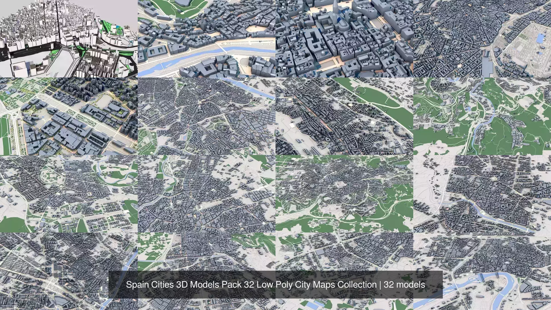 Spain Cities 3D Models Pack – 32 City Map Models Collection