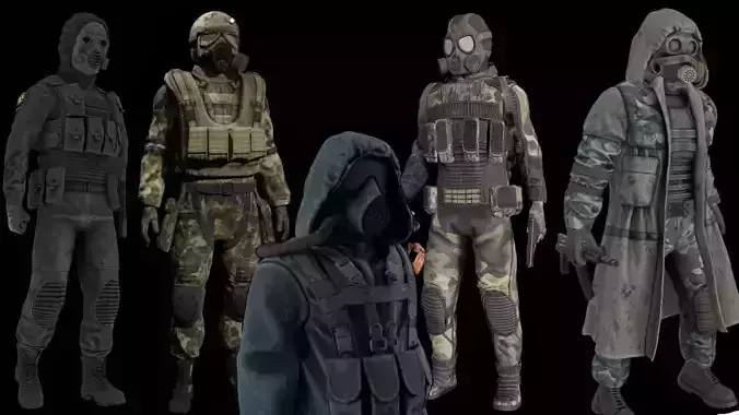Stalker like Dayz suits low-poly 3d model