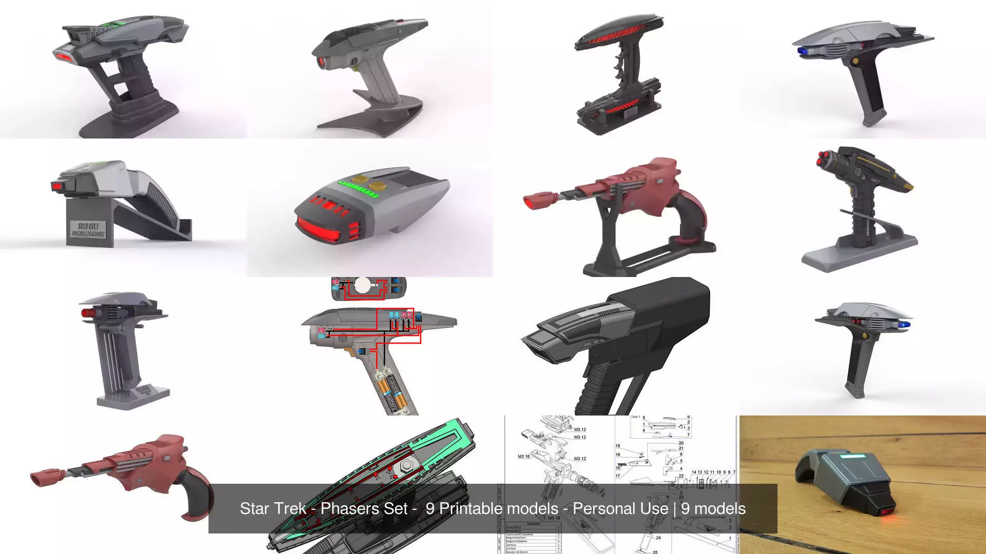 Collection includes 9 printable models of differend kind of phasers from Star Trek: