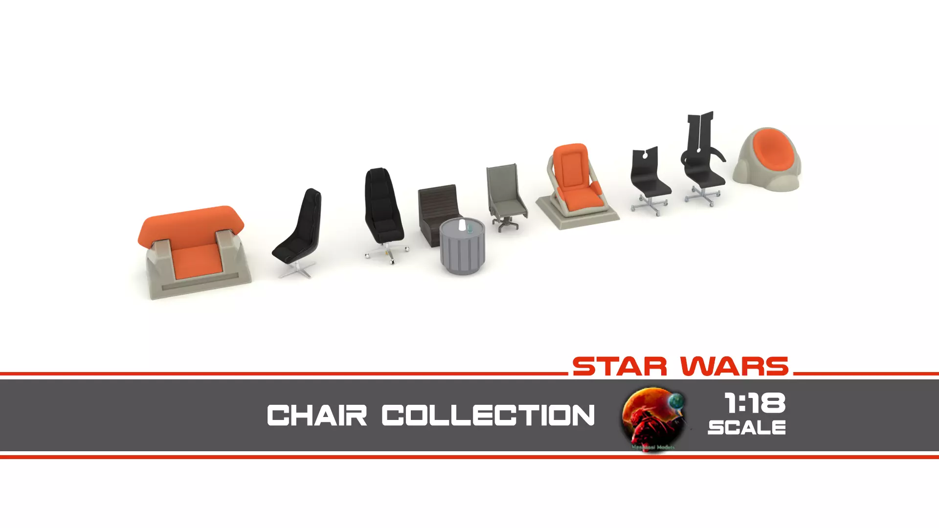 All chairs are 3D printed to the highest quality, and are perfect for display in your collection or as a centerpiece for your Star Wars-themed room. Order now and add these amazing scale model replicas to your Star Wars collection today!