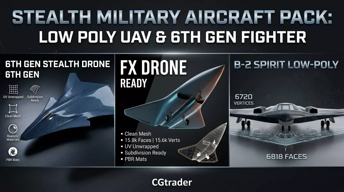Texturing: PBR (Physically Based Rendering) materials with a matte RAM (Radar-Absorbent Material) finish.