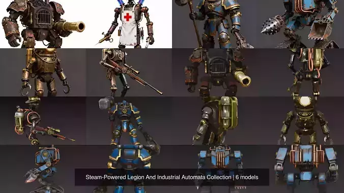 Collection DescriptionFuel the fires of industry and defend the Victorian frontier with a comprehensive army of clockwork marvels and steam-driven mechs.This collection is the definitive toolkit for developers building Steampunk RPGs, alternate-history strategy games, or industrial fantasy worlds. The set covers every role required for a functioning mechanical society, from the depths of the ocean to the frontlines of war: