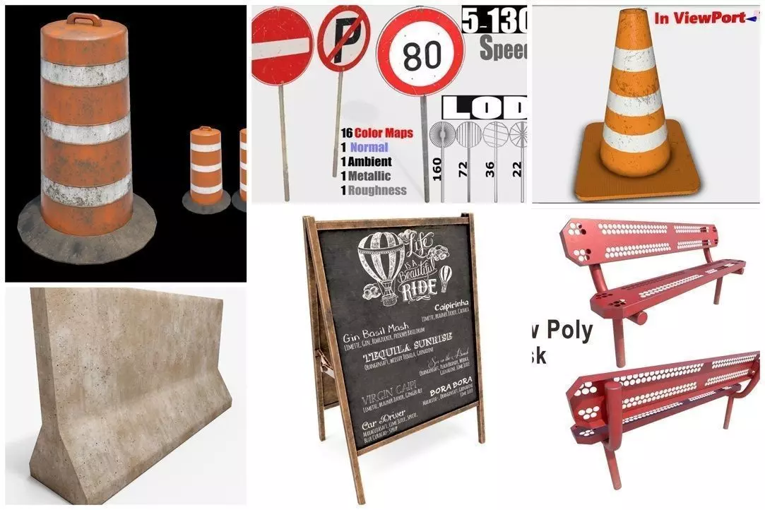 road objects - PBR 3D Model Pack