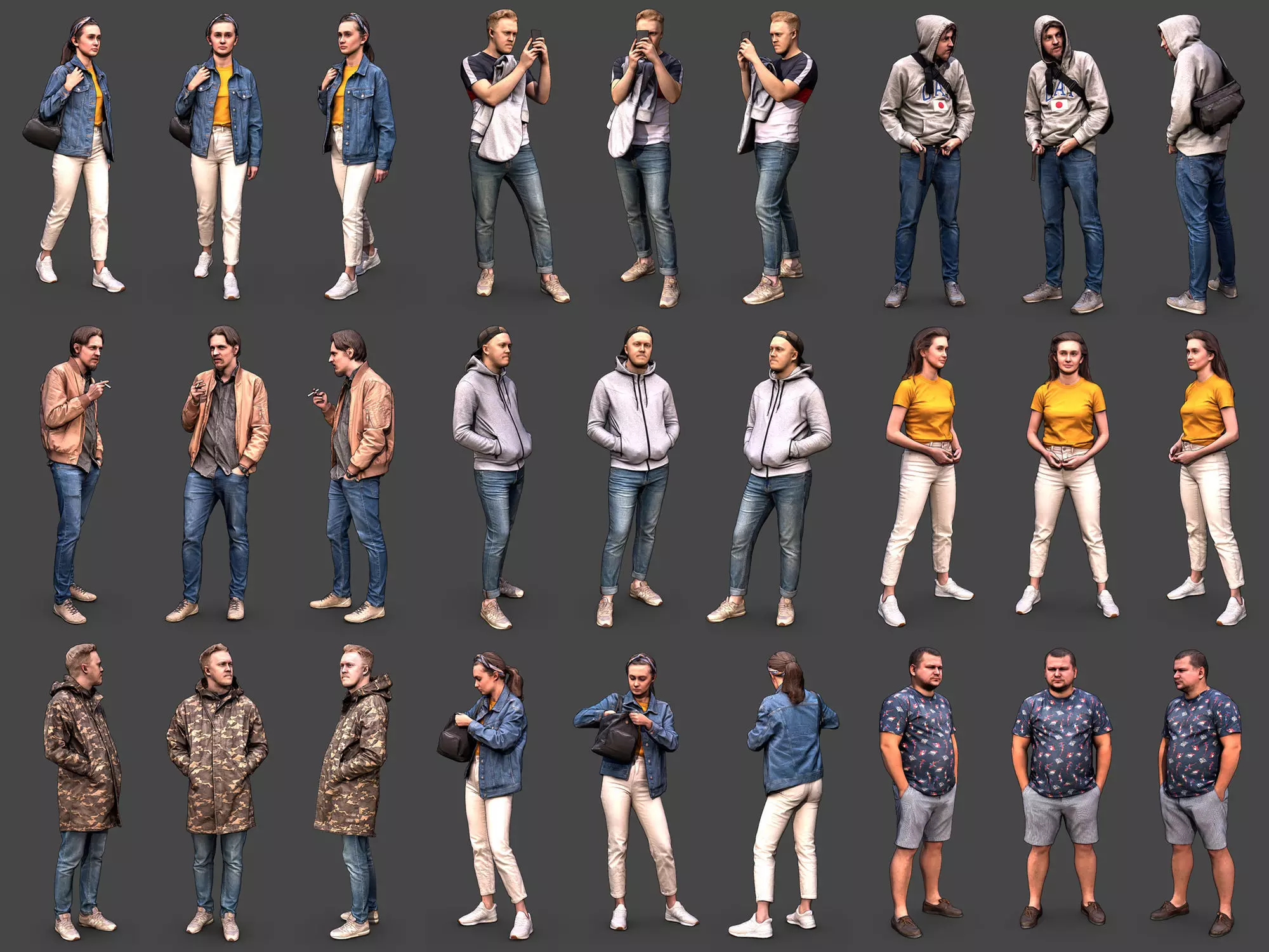 Collection contains 9 stylized characters 3d model ready for Virtual Reality (VR), Augmented Reality (AR), games and other real-time apps.