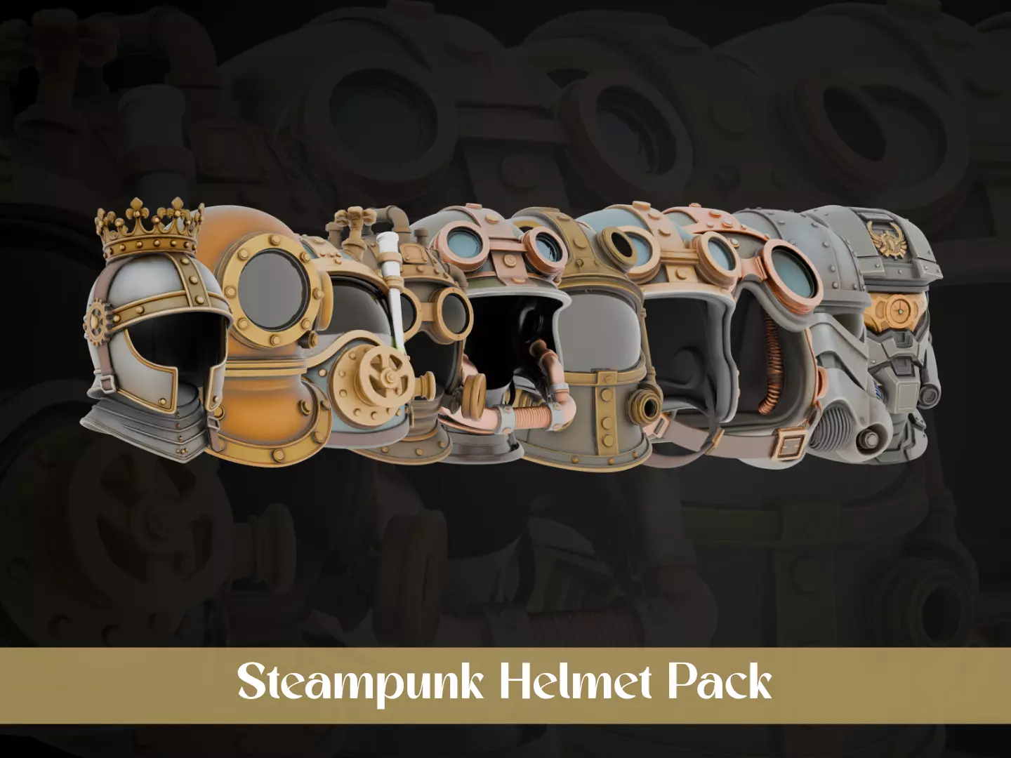 Steampunk Helmet Pack is a collection of stylized mechanized helmets inspired by Victorian industrial design. Each helmet features bold silhouettes, brass plates, riveted seams, pressure valves, goggles, and mechanical pipe details that create a strong retro-futuristic identity. The models are carefully designed with 3D printing in mind, ensuring clean geometry and solid structure while preserving fine mechanical details. The forms are slightly exaggerated to maintain clarity after printing, making them ideal for collectors, cosplay-scaled props, tabletop display, and custom paint projects. All files are prepared to minimize cleanup work before slicing and production.